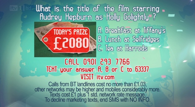 This question is for the competition as seen on the show on ITV on Monday 23rd January 2012.
