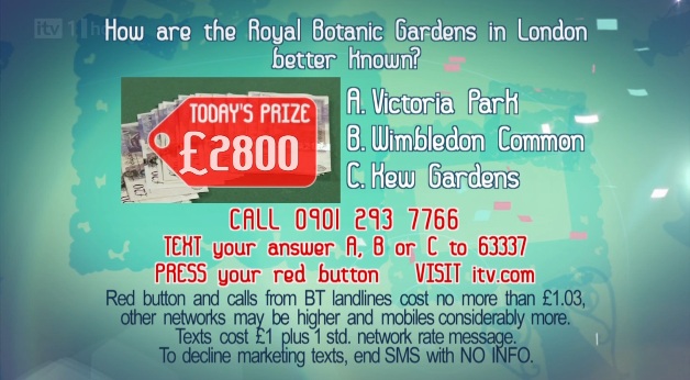 This question is for the competition as seen on the show on ITV on Tuesday 24th January 2012.