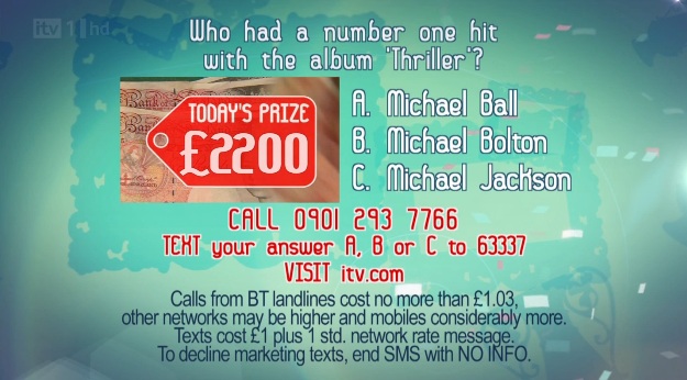 This question is for the competition as seen on the show on ITV on Monday 30th January 2012.