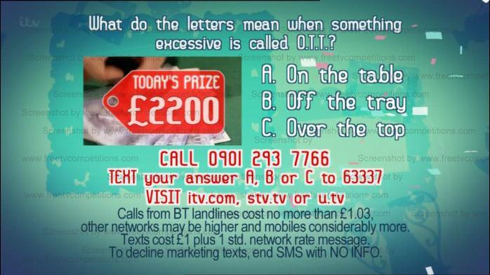 Save at least £3.09 on paid entries for each person who enters. You can get free entry for every daily Real Deal or other ITV competitions that are featured on this website.