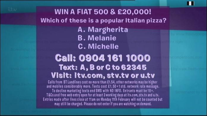 3 thoughts on “Loose Women Competition – Free Entry ITV – Win £20K Cash & Fiat 500 – Ends 15/02/13”