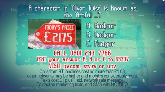Enter here for free on 11/03/13 for Dickinson’s Real Deal competition, question and answer for Monday 11th March 2013. You can enter here with ITV.com, STV or UTV for Monday’s Real Deal TV competition. In today’s competition, each person is allowed to 3 (three) free entries at the website (see links below).