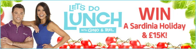 This is for the Prize Draw as featured on Let’s Do Lunch with Gino & Mel from Monday 22nd July until Friday 5th July and Monday 15th until Friday 19th July. The closing date for online entries is 2nd August 2013 at 7.30am. You must be 18 years or over to enter. Sourced from ITV.com