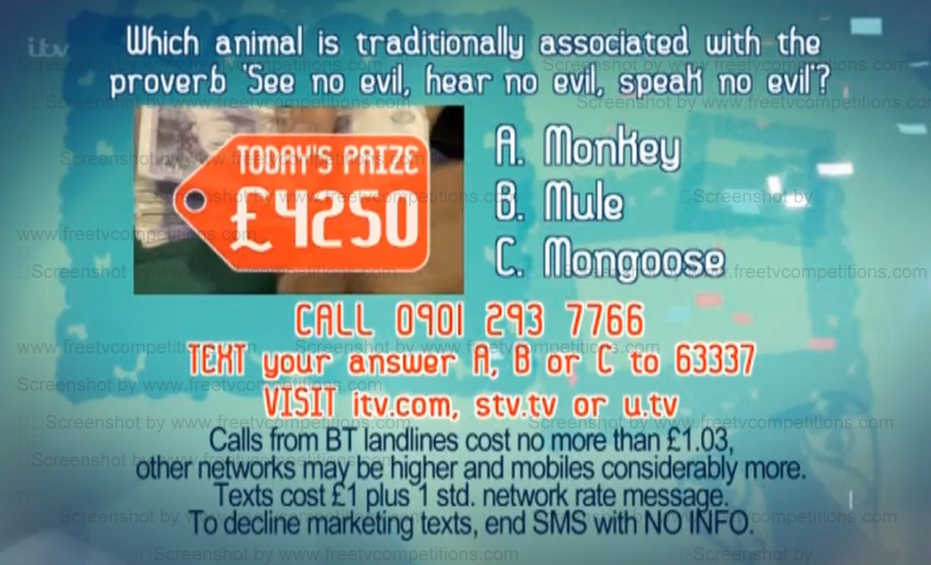 You’ll typically save at around £1 per entry on most ITV & channel4 premium rate phone or text number submissions.