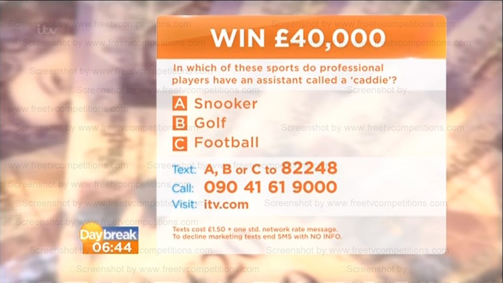 The latest free web entry for Daybreak TV competition or Lorraine TV competition is worth £40,000 in a tax free cash prize.