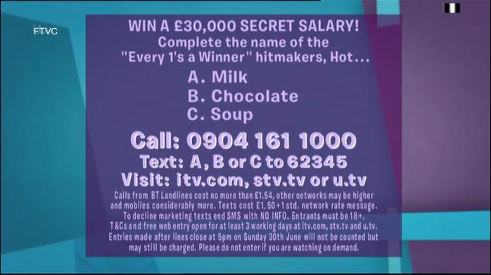Each person can save at least £9 by using free website entries. Normal premium phone rate cost per entry is £1.50 plus standard network cost.