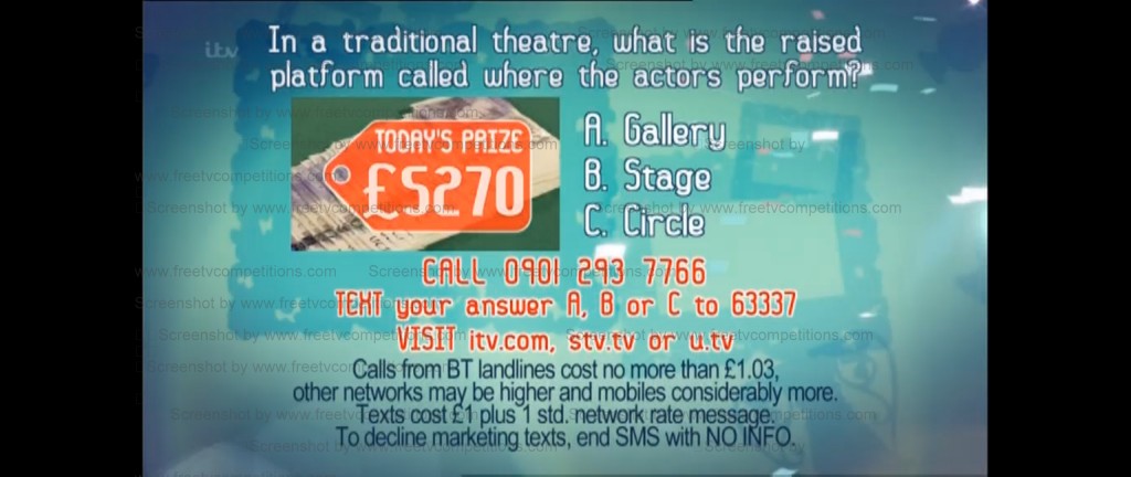 Prize for ITV show quiz broadcast on Monday 2nd December 201.