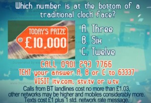 Each person can typically save around £1 per entry on most ITV & channel4 premium rate telephone or sms text number submissions.