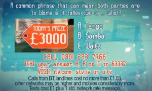 In today’s competition, broadcast from Stockport, ITV, STV & UTV TV viewers or website visitors are allowed 3 (three) free ITV.com website entries using the links provided.