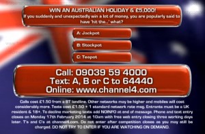 Entrants must be aged 18 years or over. Channel 4 reserves the right to disallow entries if they have reasonable grounds to suspect they have been made from outside the UK.